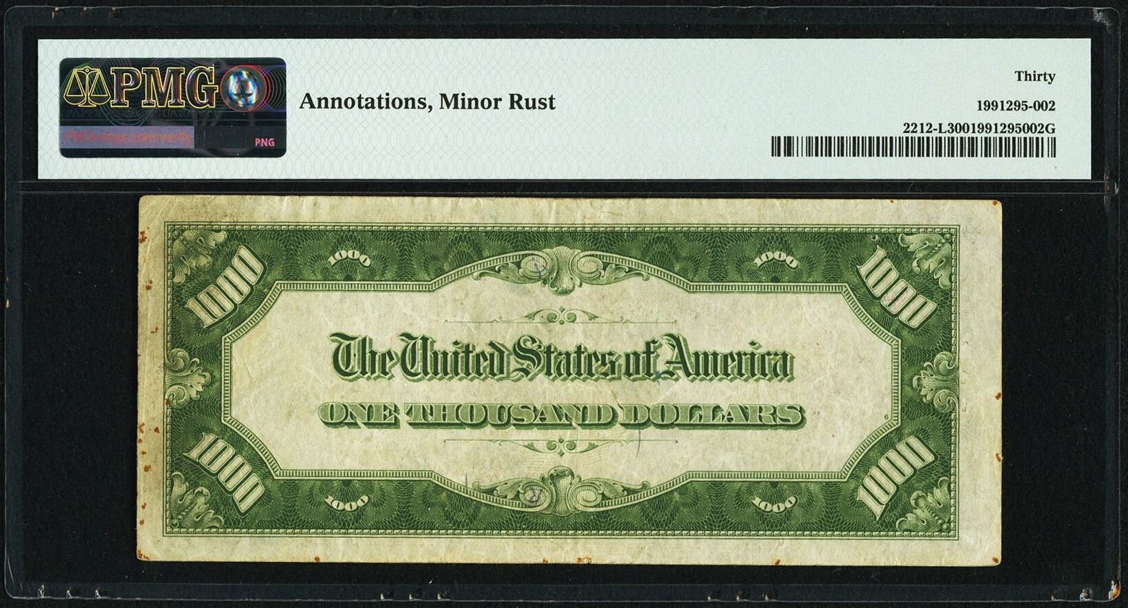 One 1934A $1000 San Francisco Federal Reserve Note PMG 30.