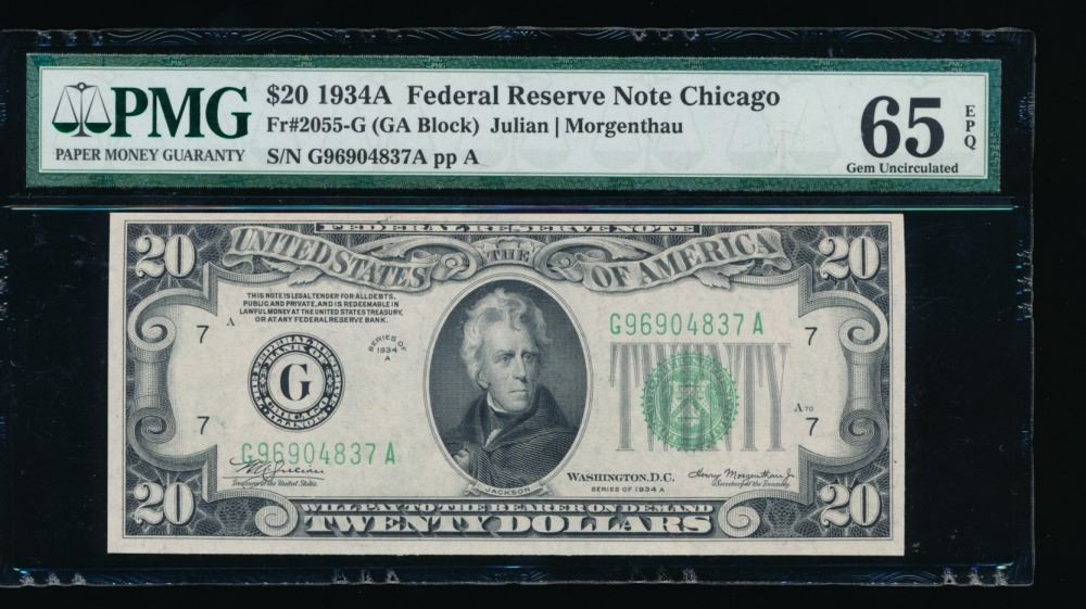 One 1934A $20 Chicago Federal Reserve Note PMG 65EPQ.
