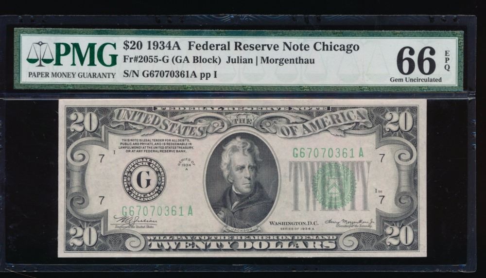 One 1934A $20 Chicago Federal Reserve Note PMG 66EPQ.