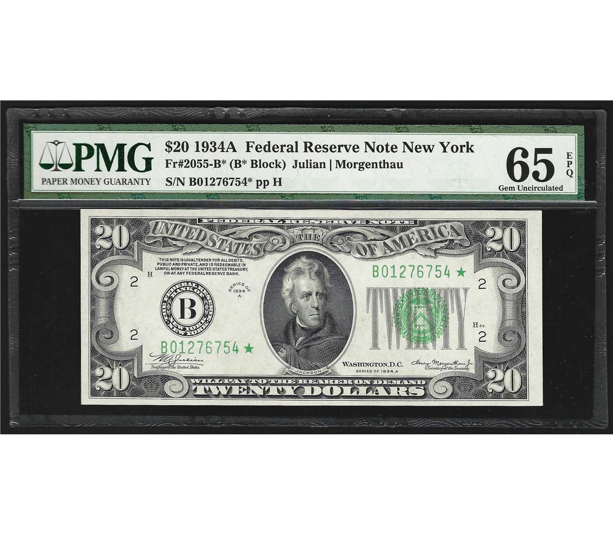 One 1934A $20 Federal Reserve STAR Note PMG Gem Uncirculated 65EPQ. PMG Certified.