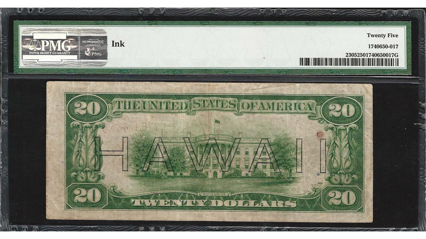 1934A $20 Hawaii Federal Reserve WWII Emergency Note PMG Very Fine 25