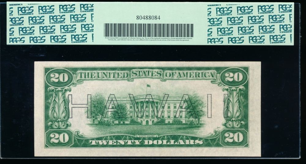 One 1934A $20 Hawaii Mule Federal Reserve Note PCGS 58.
