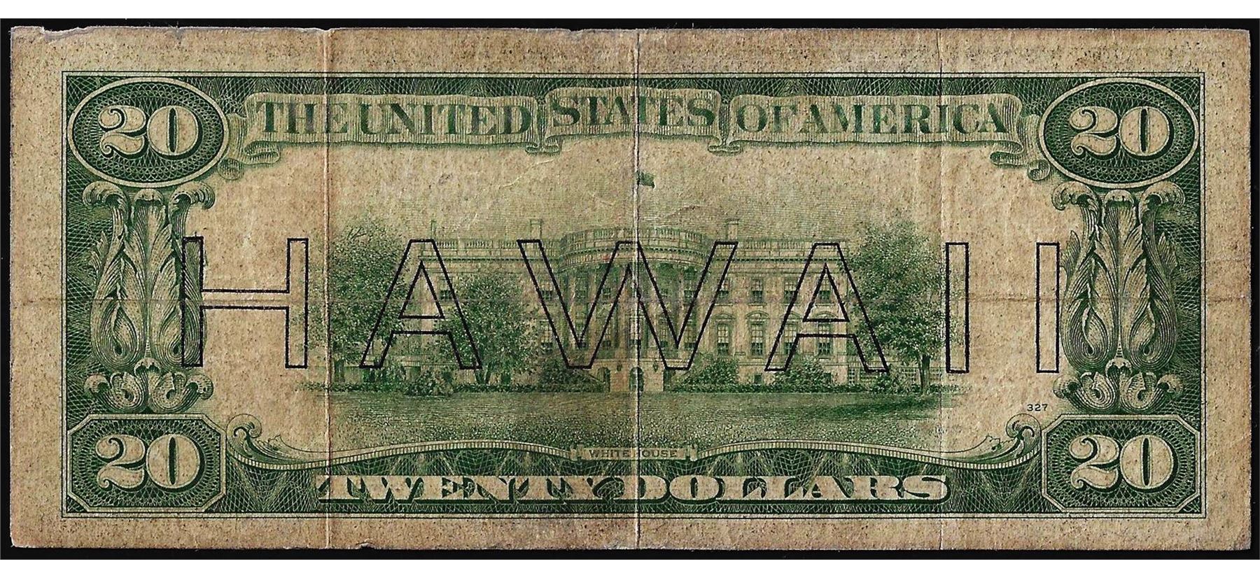 One 1934A $20 Hawaii WWII Emergency Issue Federal Reserve Note.