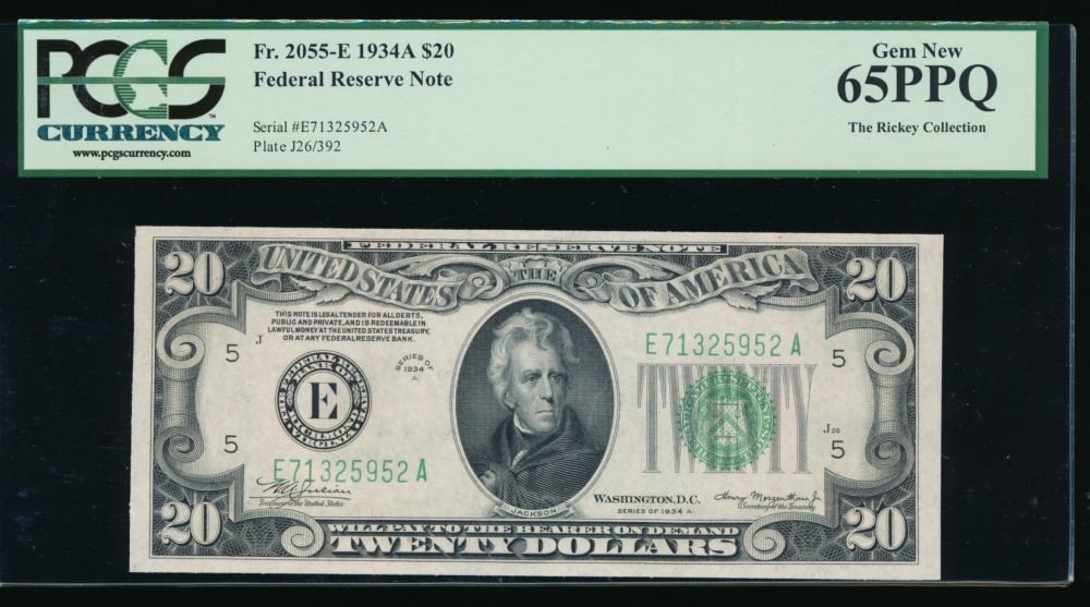 One 1934A $20 Richmond Federal Reserve Note PCGS 65PPQ.