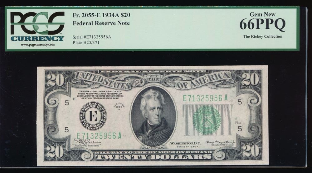 One 1934A $20 Richmond Federal Reserve Note PCGS 66PPQ.