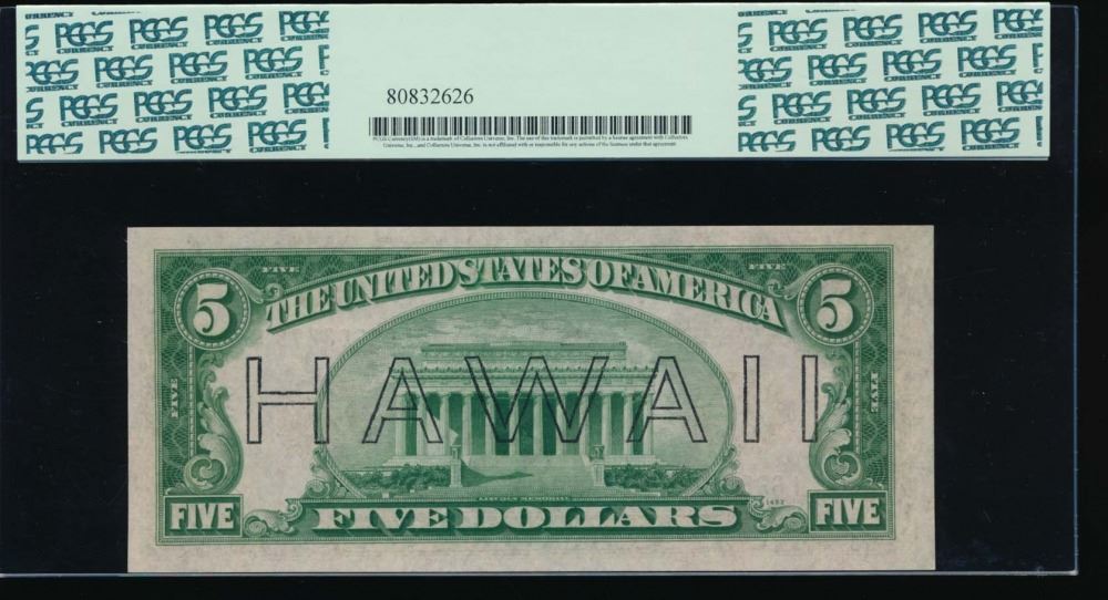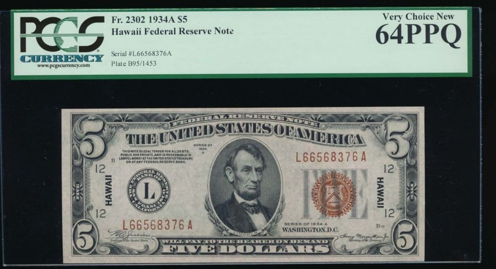 One 1934A $5 Hawaii Federal Reserve Note PCGS 64PPQ.