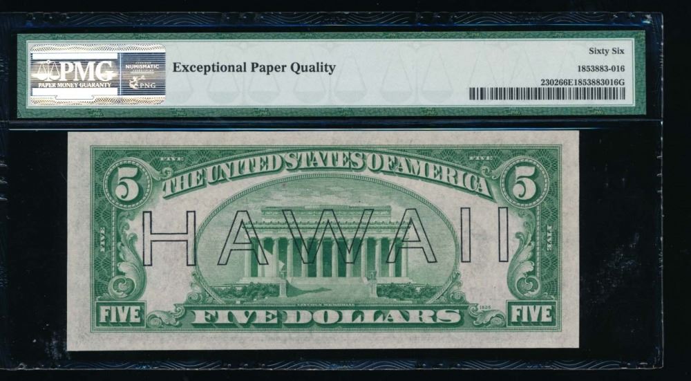 One 1934A $5 Hawaii Federal Reserve Note PMG 66EPQ.