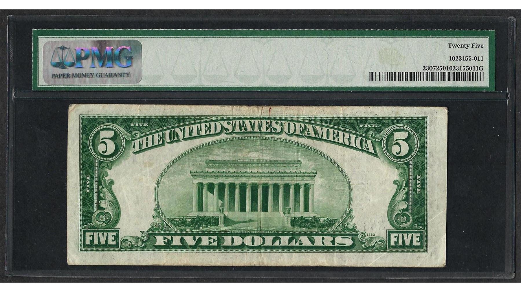 One 1934A $5 North Africa Silver Certificate WWII Emergency Note Fr.2307 PMG Very Fine 25. PMG Certified.