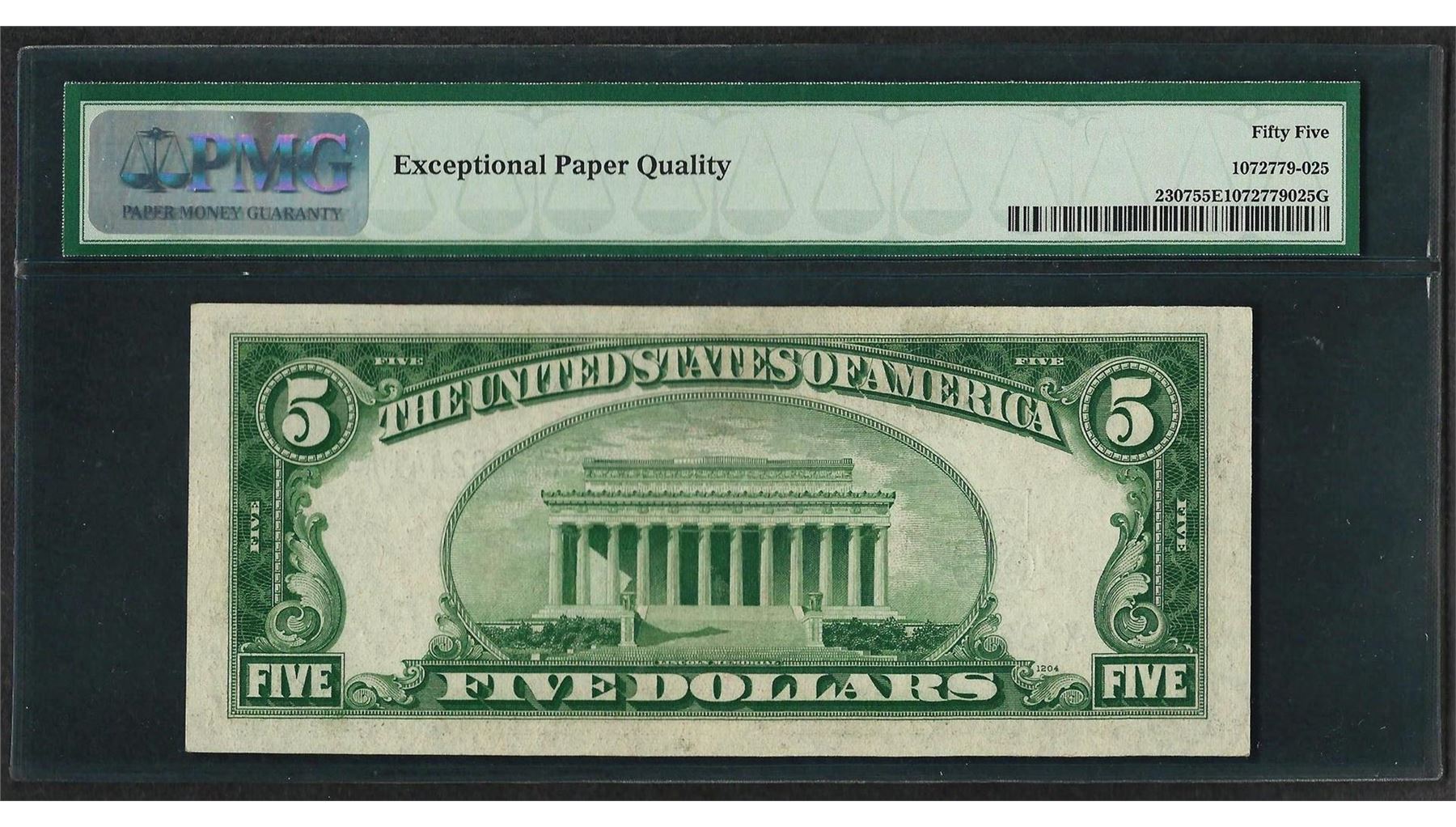 One 1934A $5 North Africa Silver Certificate WWII Emergency Note PMG About Unc. 55EPQ. PMG Certified.