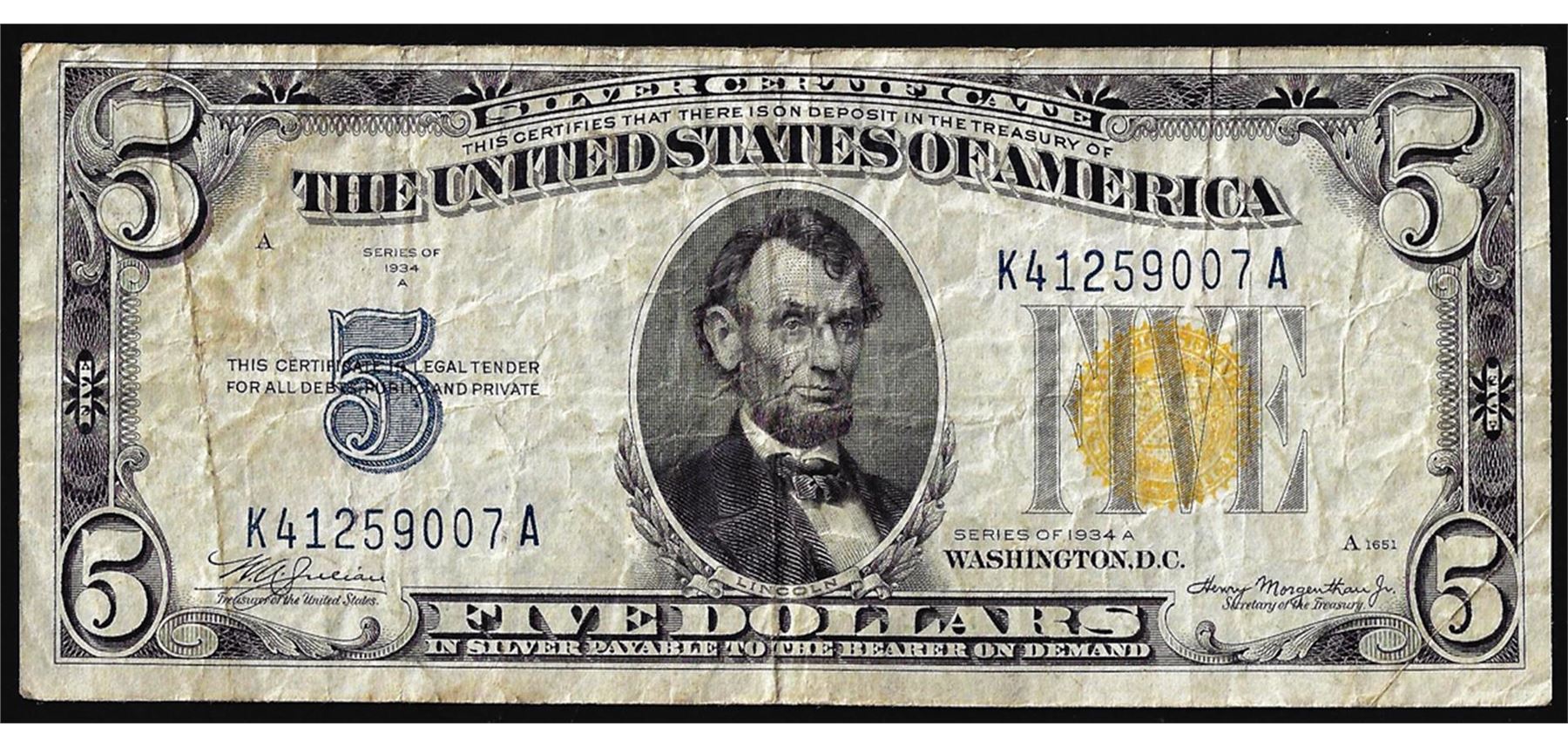 1934A $5 North Africa WWII Emergency Issue Silver Certificate Note
