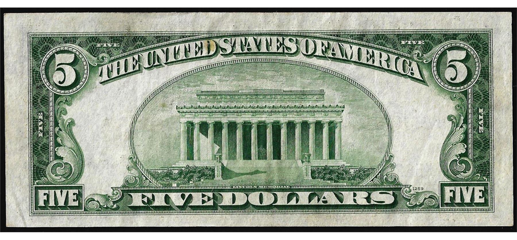 One 1934A $5 North Africa WWII Emergency Issue Silver Certificate Note.