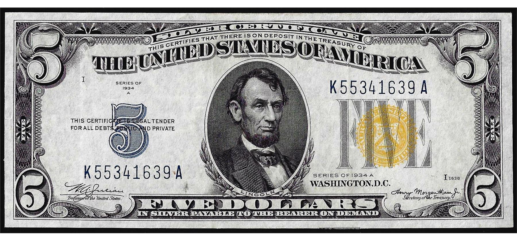 1934A $5 North Africa WWII Emergency Issue Silver Certificate Note