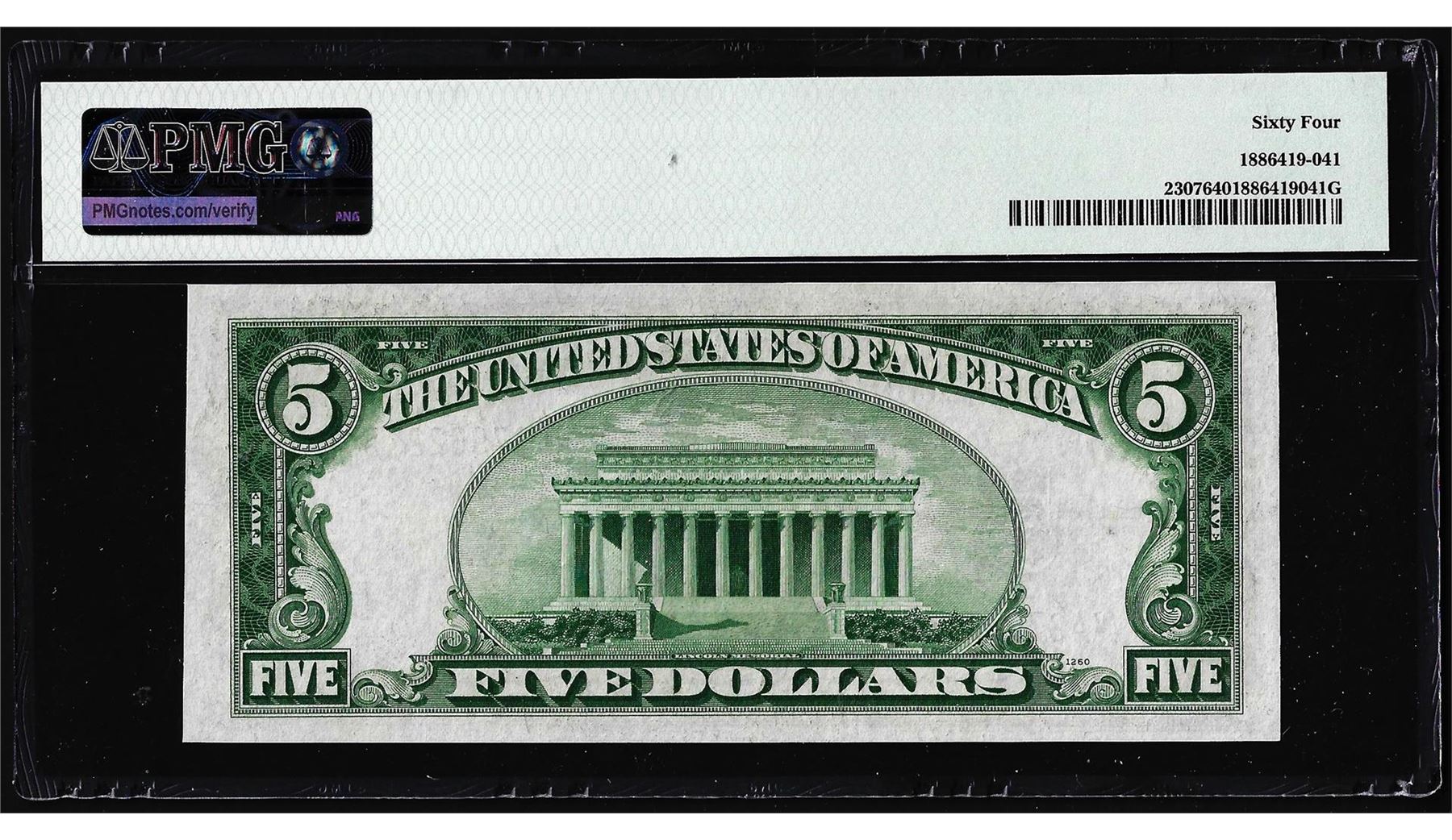 1934A $5 North Africa WWII Emergency Silver Certificate Note PMG Ch. Uncirculated 64