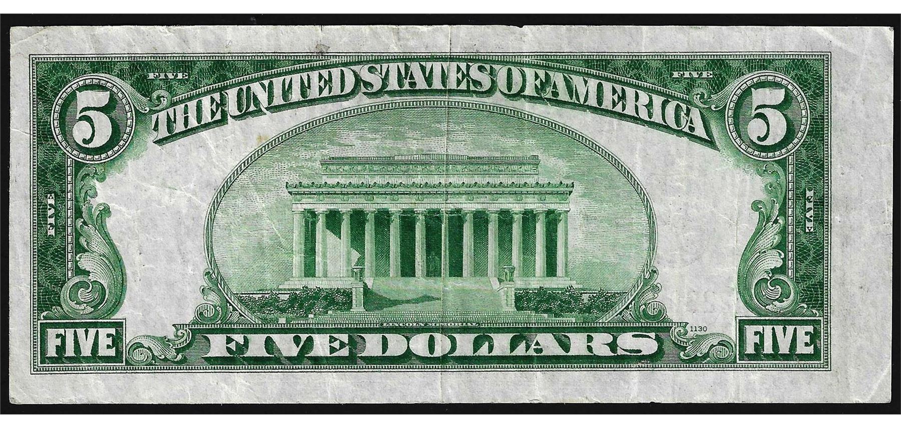 One 1934A $5 Silver Certificate Note ERROR Gutterfold.