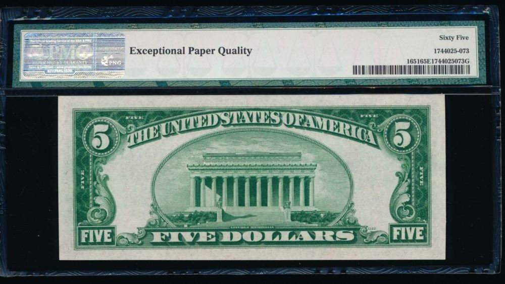 One 1934A $5 Silver Certificate PMG 65EPQ.