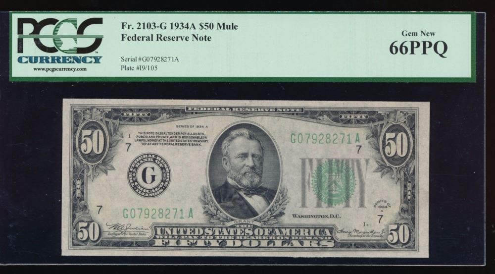 One 1934A $50 Chicago Federal Reserve Note PCGS 66PPQ.