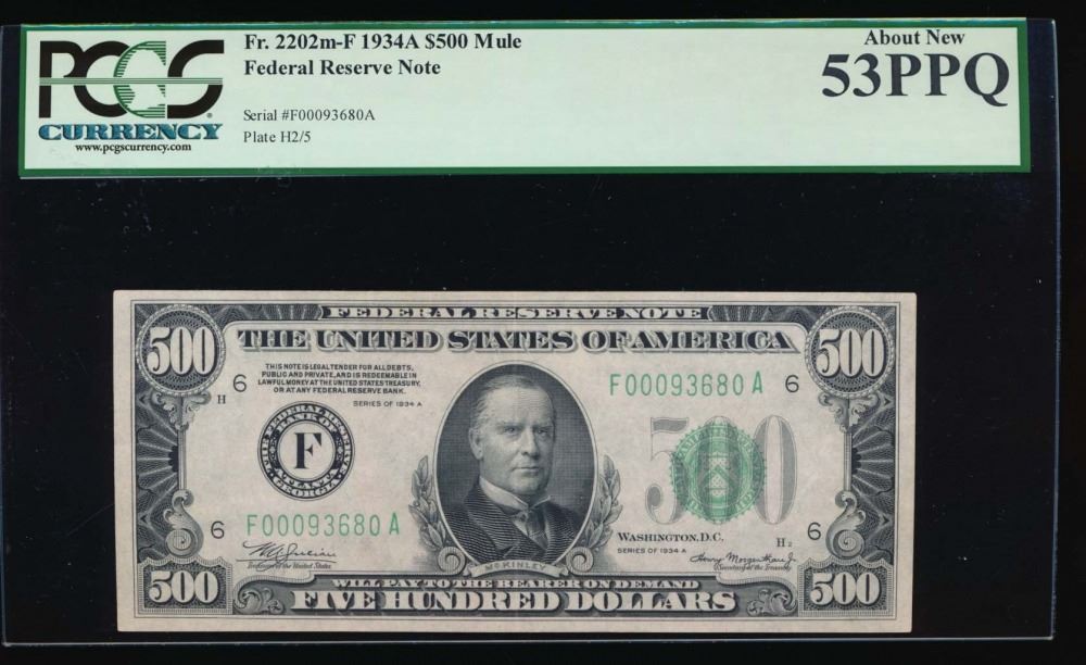 One 1934A $500 Atlanta Federal Reserve Note PCGS 53PPQ.