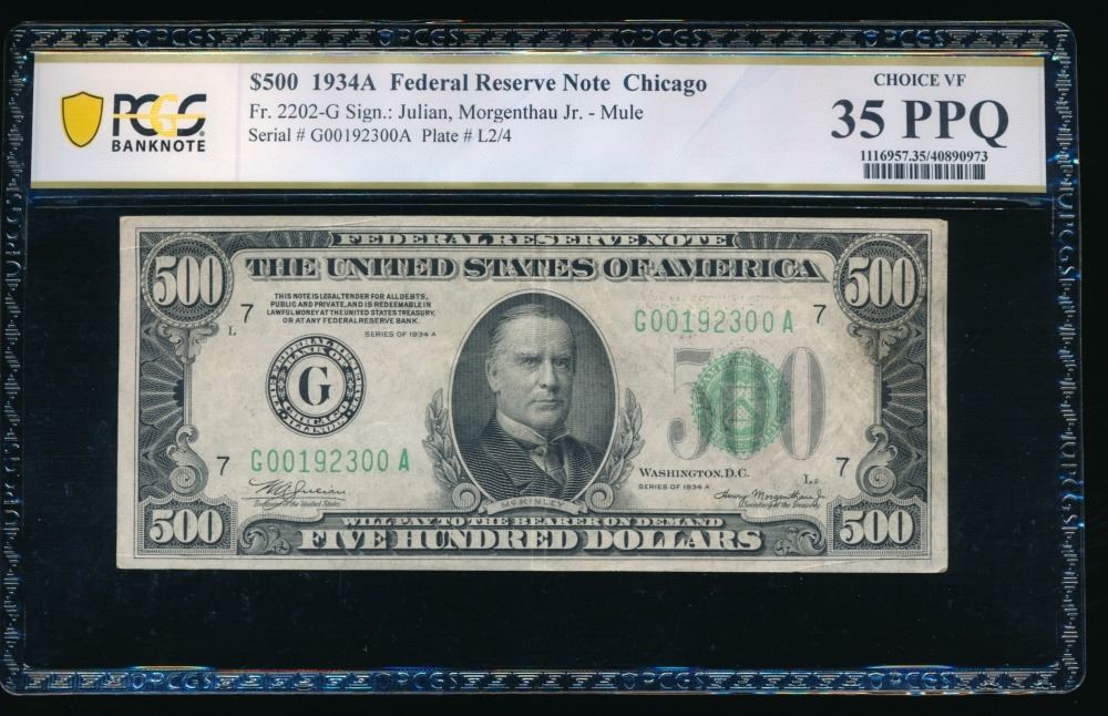 One 1934A $500 Chicago FRN PCGS 35PPQ.