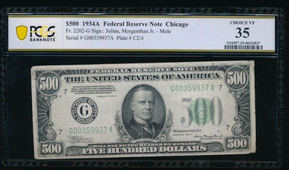 One 1934A $500 Chicago FRN PCGS 35.