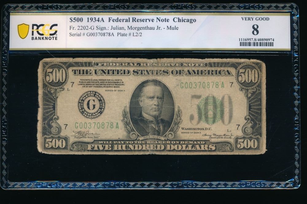 One 1934A $500 Chicago FRN PCGS 8.