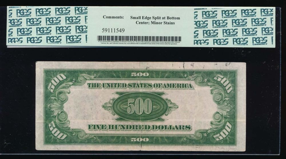 One 1934A $500 Chicago Federal Reserve Note PCGS 20.