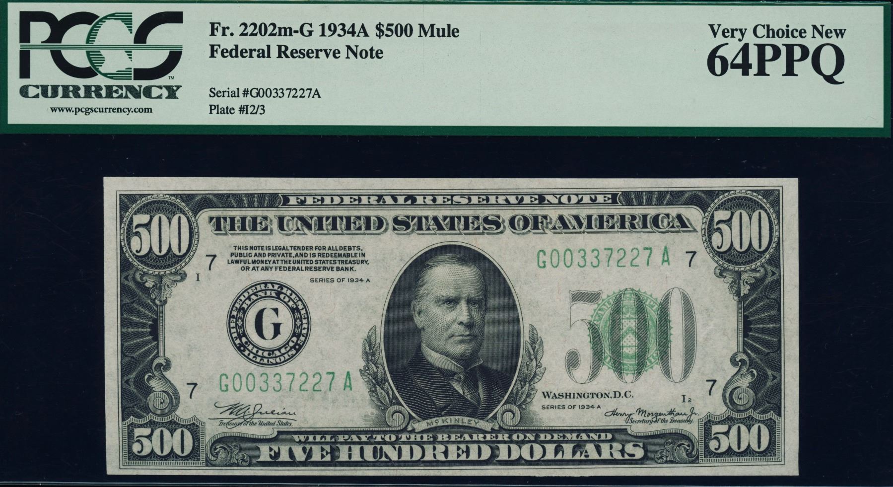 One 1934A $500 Chicago Federal Reserve Note PCGS 64PPQ.