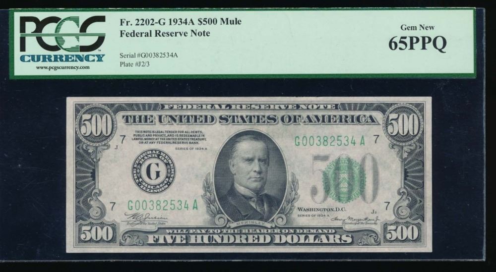One 1934A $500 Chicago Federal Reserve Note PCGS 65PPQ.