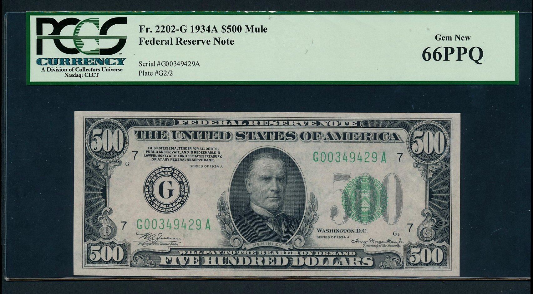 One 1934A $500 Chicago Federal Reserve Note PCGS 66PPQ.