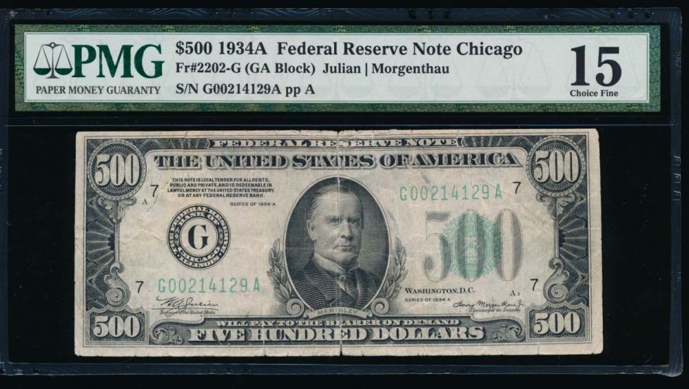 One 1934A $500 Chicago Federal Reserve Note PMG 15.