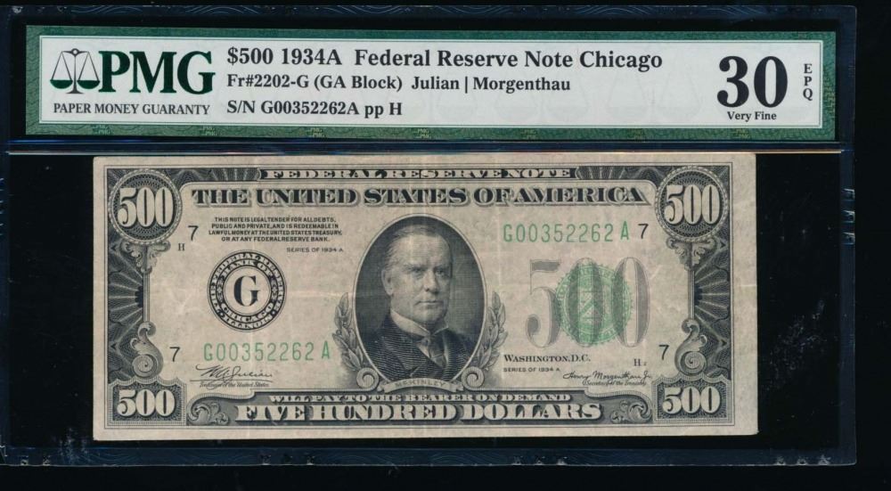 One 1934A $500 Chicago Federal Reserve Note PMG 30EPQ.