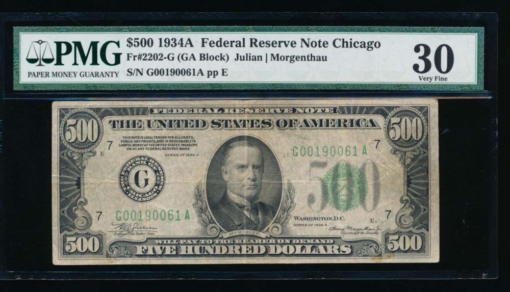 One 1934A $500 Chicago Federal Reserve Note PMG 30.