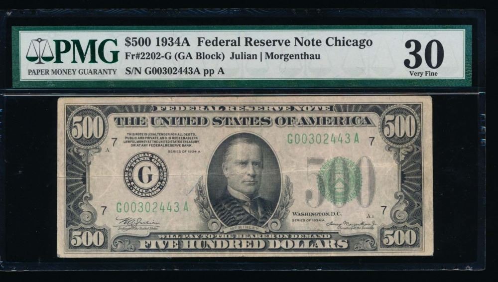 One 1934A $500 Chicago Federal Reserve Note PMG 30.