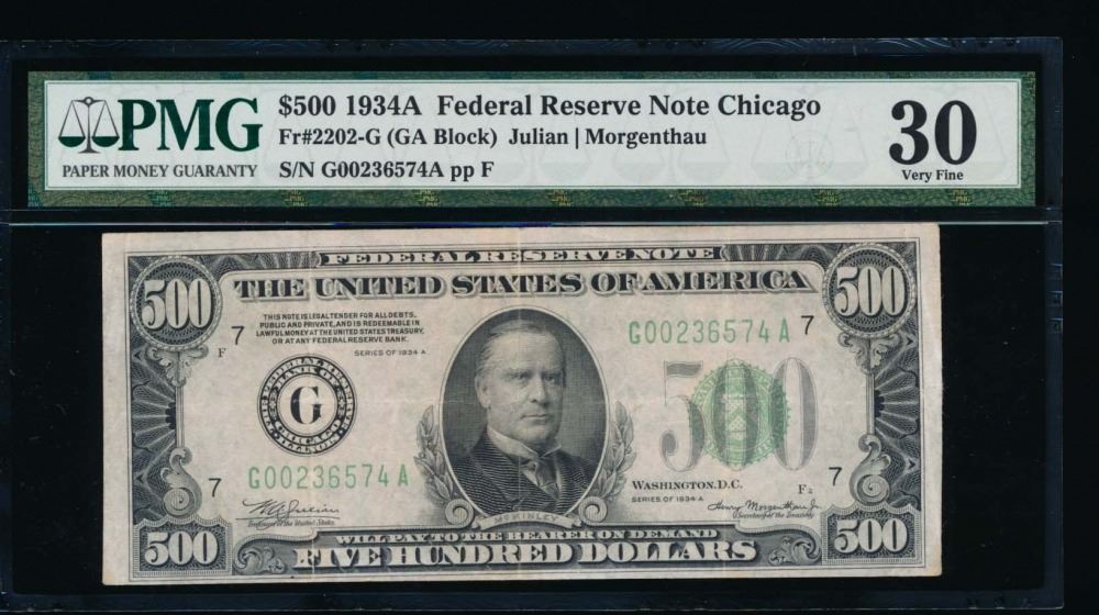 One 1934A $500 Chicago Federal Reserve Note PMG 30.