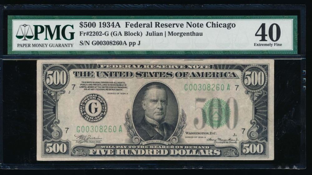 One 1934A $500 Chicago Federal Reserve Note PMG 40.