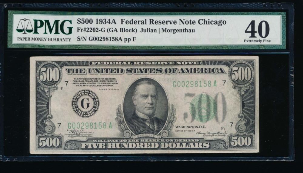 One 1934A $500 Chicago Federal Reserve Note PMG 40.