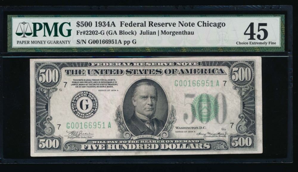 One 1934A $500 Chicago Federal Reserve Note PMG 45.