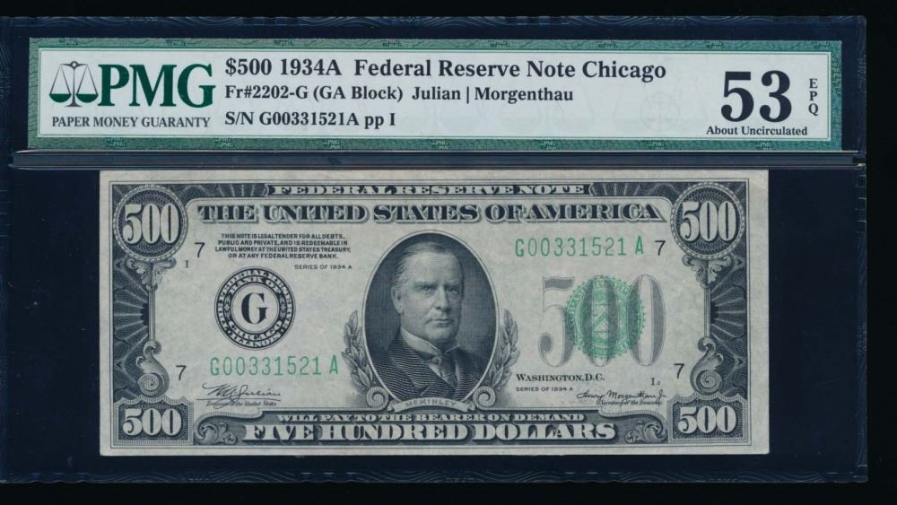 One 1934A $500 Chicago Federal Reserve Note PMG 53EPQ.