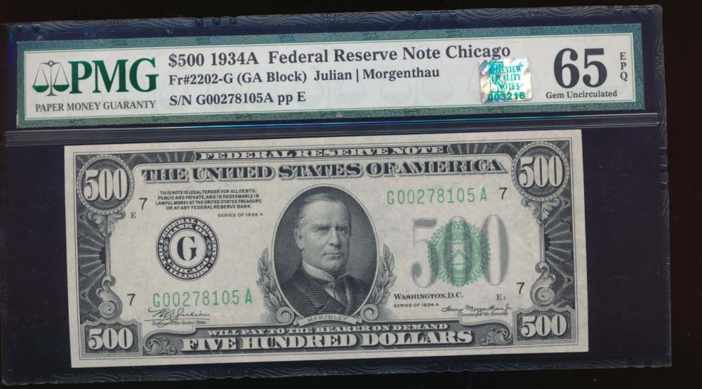 One 1934A $500 Chicago Federal Reserve Note PMG 65EPQ.