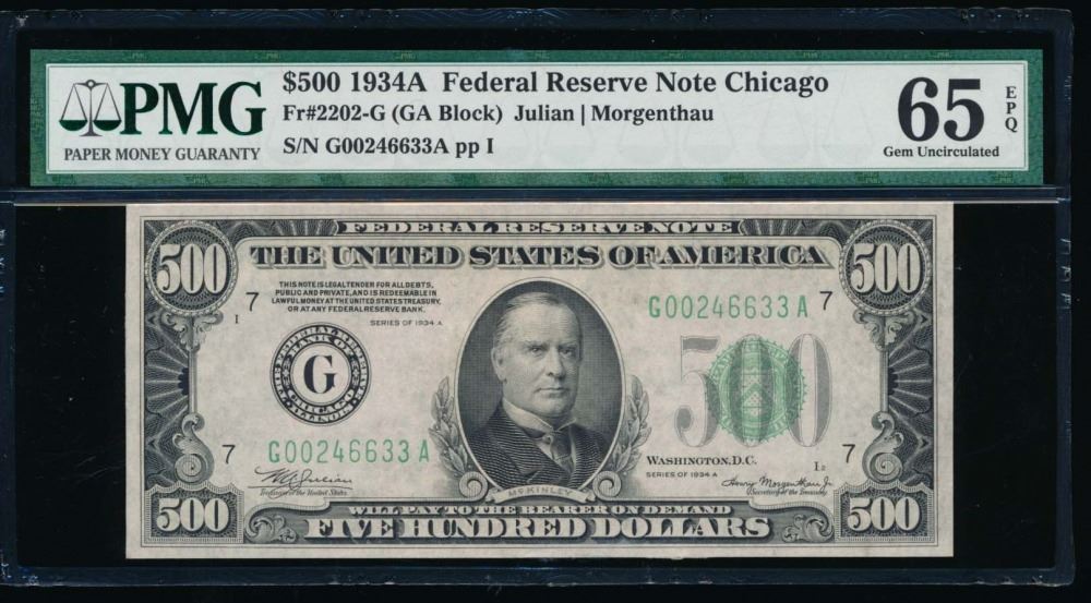 One 1934A $500 Chicago Federal Reserve Note PMG 65EPQ.