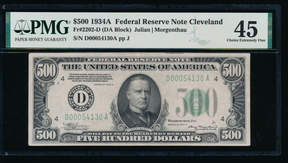 One 1934A $500 Cleveland Federal Reserve Note PMG 45.