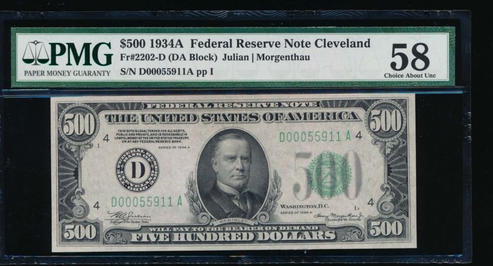 One 1934A $500 Cleveland Federal Reserve Note PMG 58.