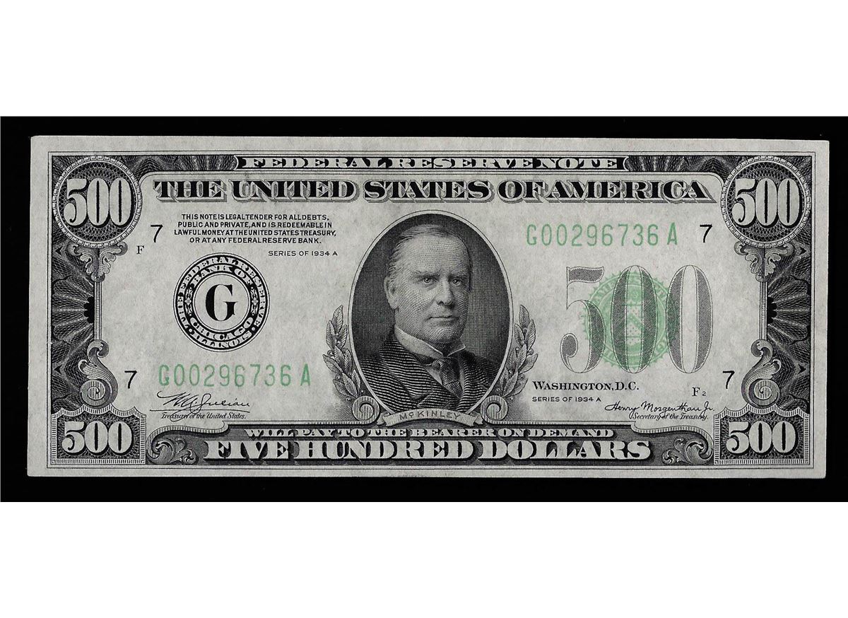 One 1934A $500 Federal Reserve Note Chicago Illinois.
