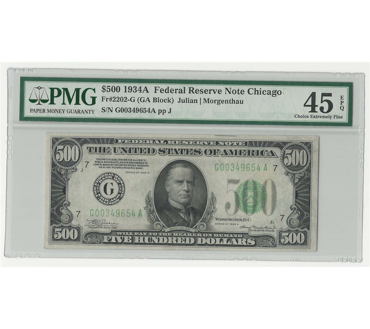 One 1934A $500 Federal Reserve Note Chicago PMG Choice Extremely Fine 45EPQ. PMG Certified.