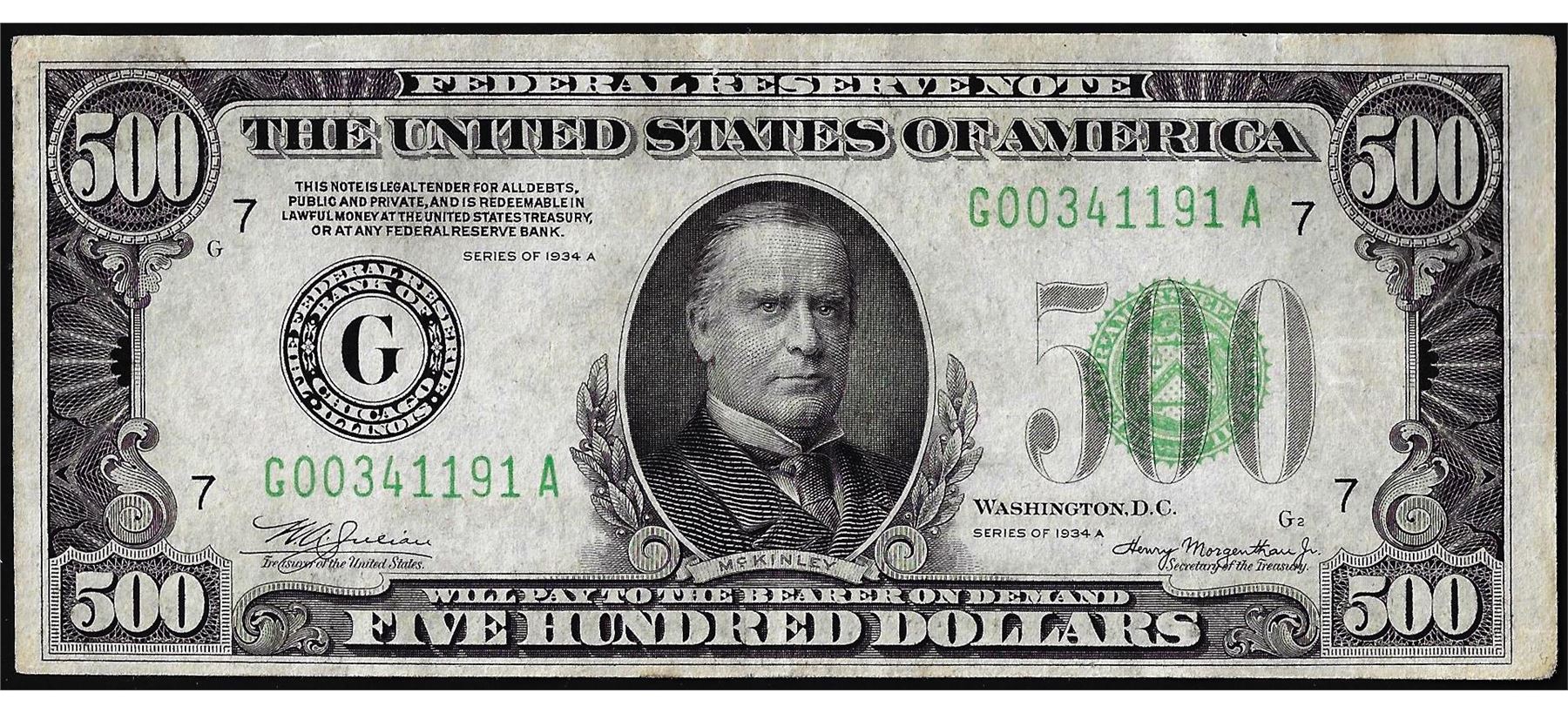 One 1934A $500 Federal Reserve Note Chicago.