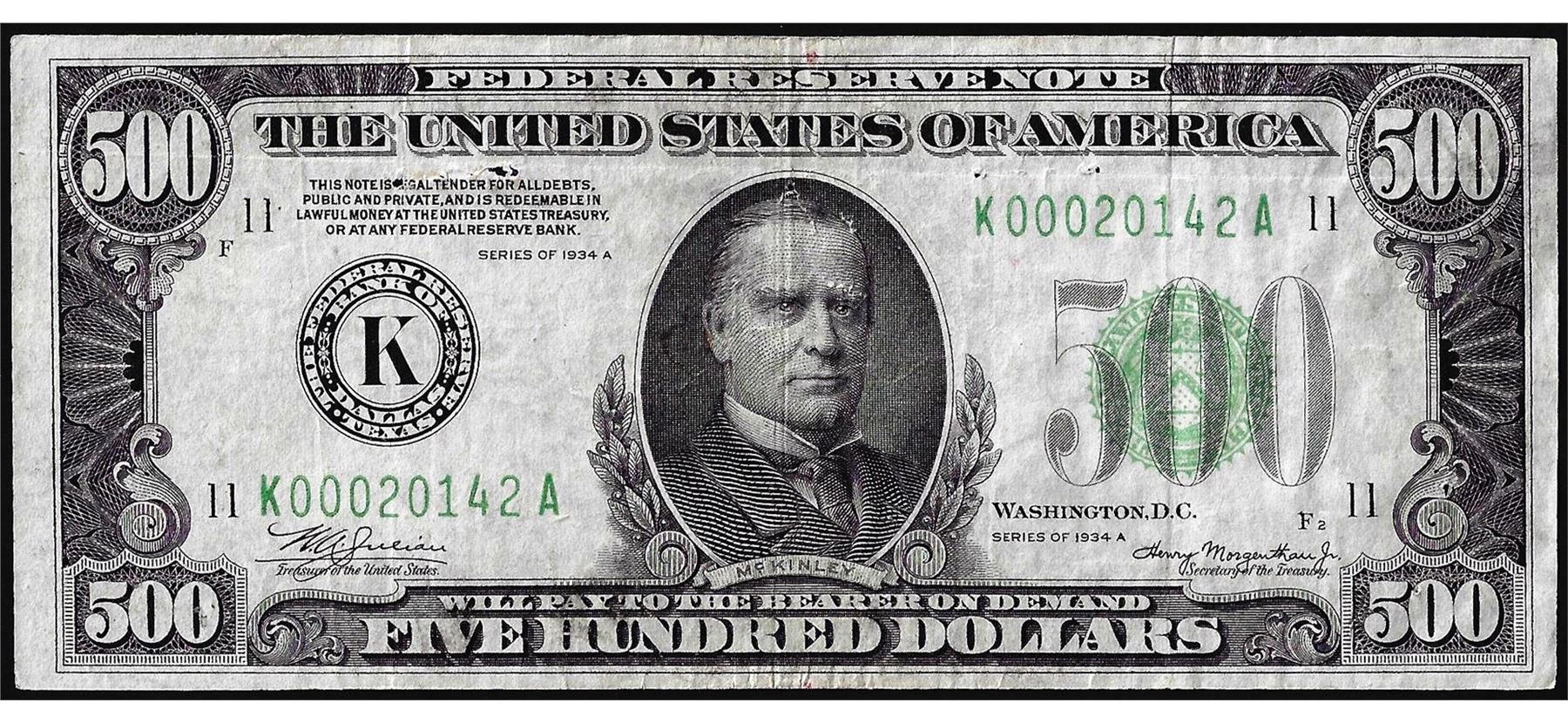 One 1934A $500 Federal Reserve Note Dallas.