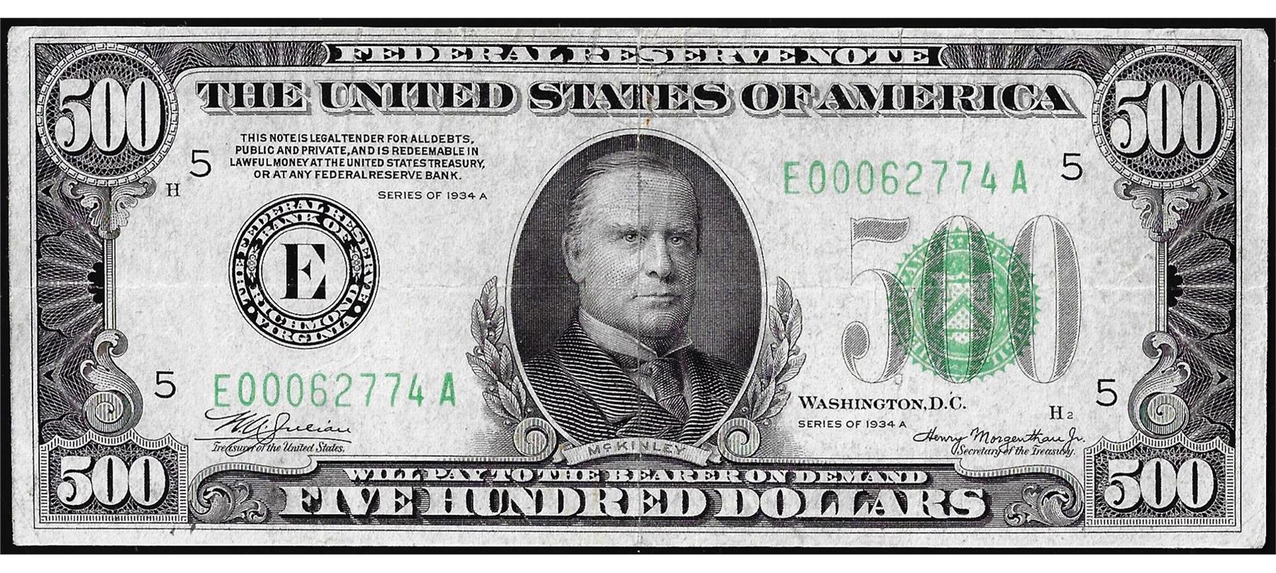 One 1934A $500 Federal Reserve Note Richmond.