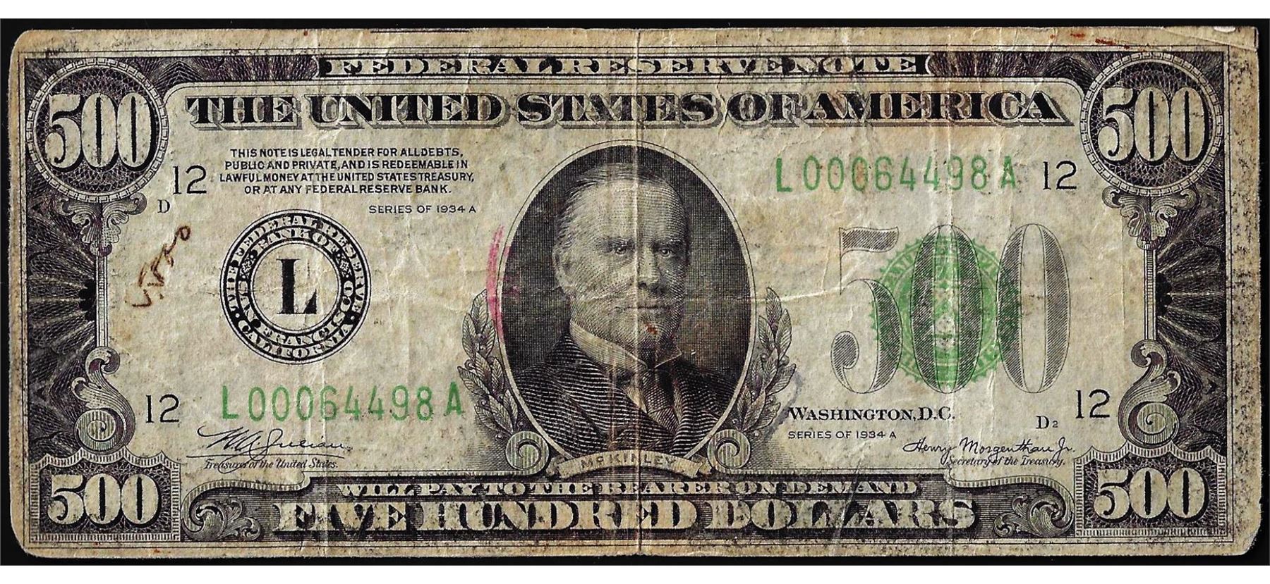 One 1934A $500 Federal Reserve Note San Francisco.