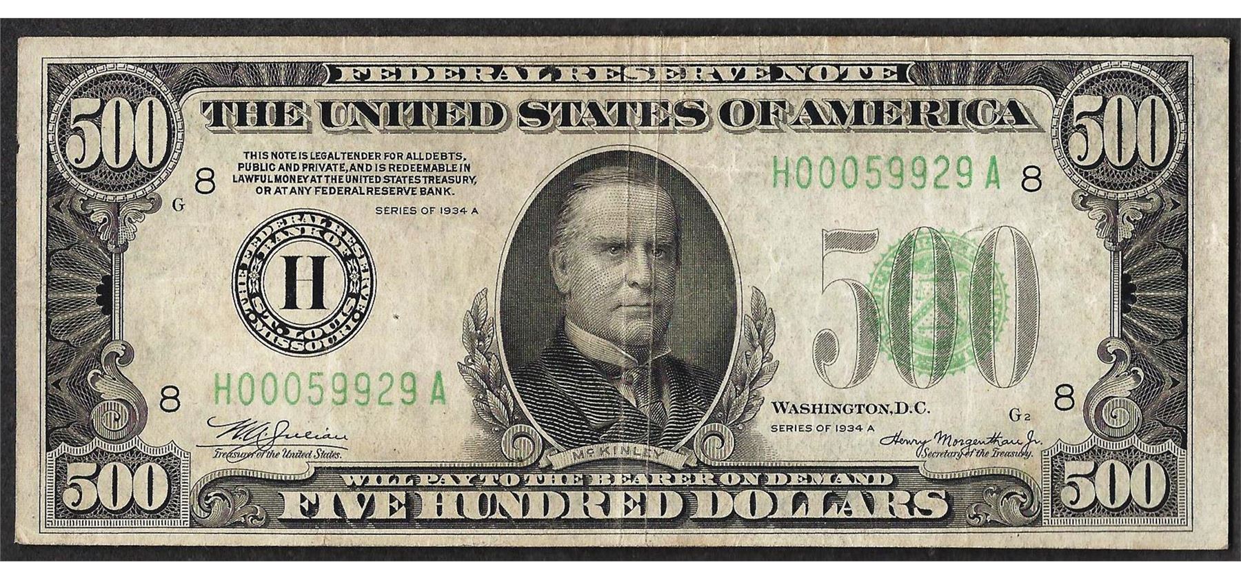 One 1934A $500 Federal Reserve Note St. Louis.