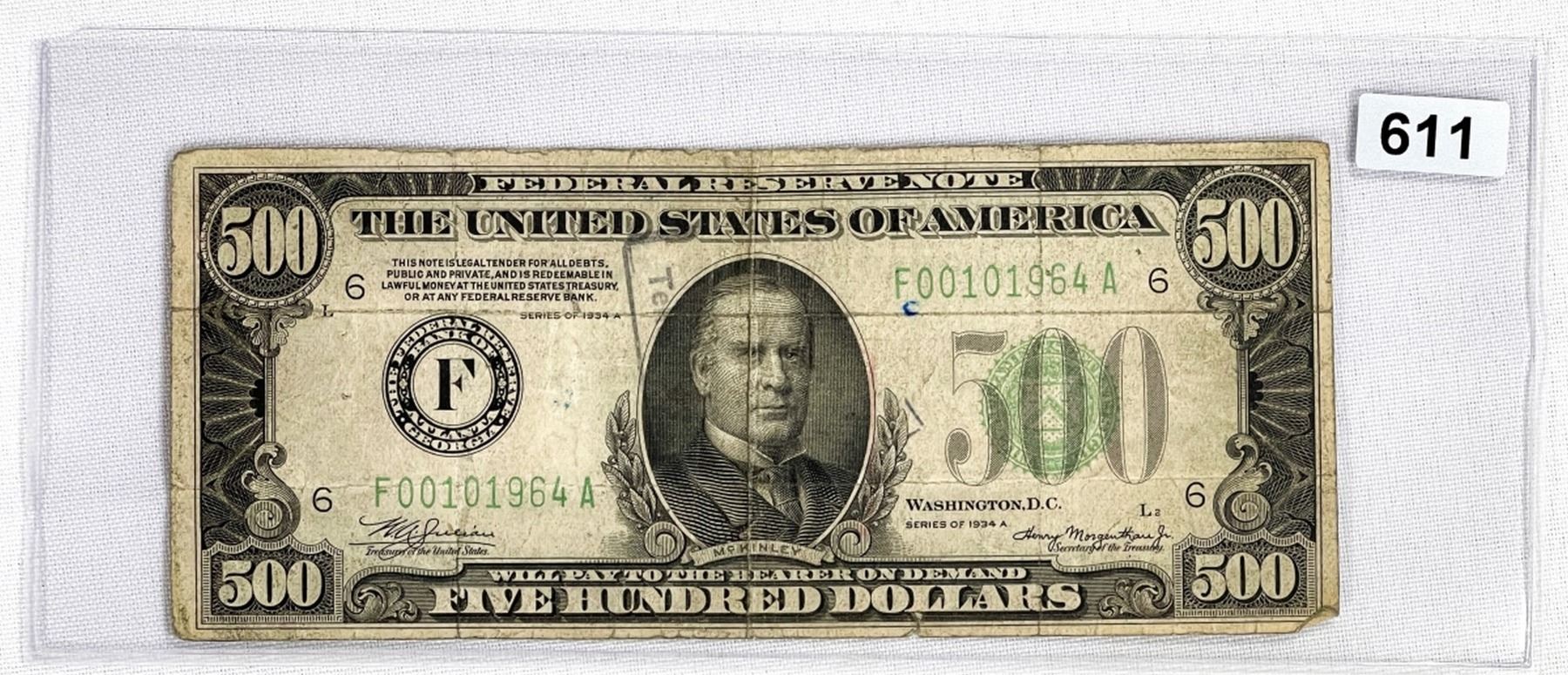 1934A $500 Five Hundred Dollar Fed. Reserve Note