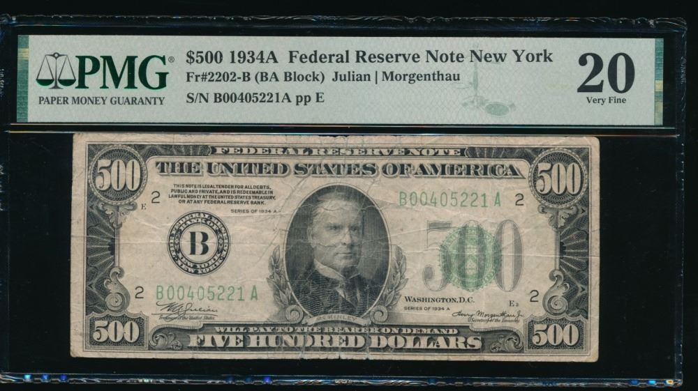One 1934A $500 New York FRN PMG 20.